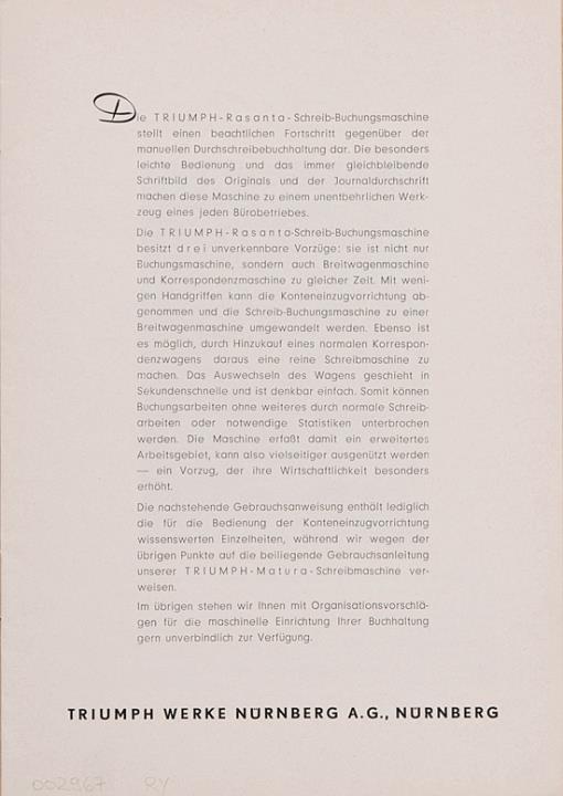 Bedienungsanleitung für Schreib- und Buchungsmaschine Triumph Rasanta Nr. 1033/454/n