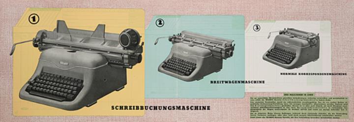 Next to literature on the history of technology, of the typewriter and the office, the Archive holds patent letters, textbooks and instruction manuals as well as historical postcards, letters, photographs and various kinds of advertising (leaflets and brochures, advertising stamps, newspaper ads, posters and signs, promotional gifts).