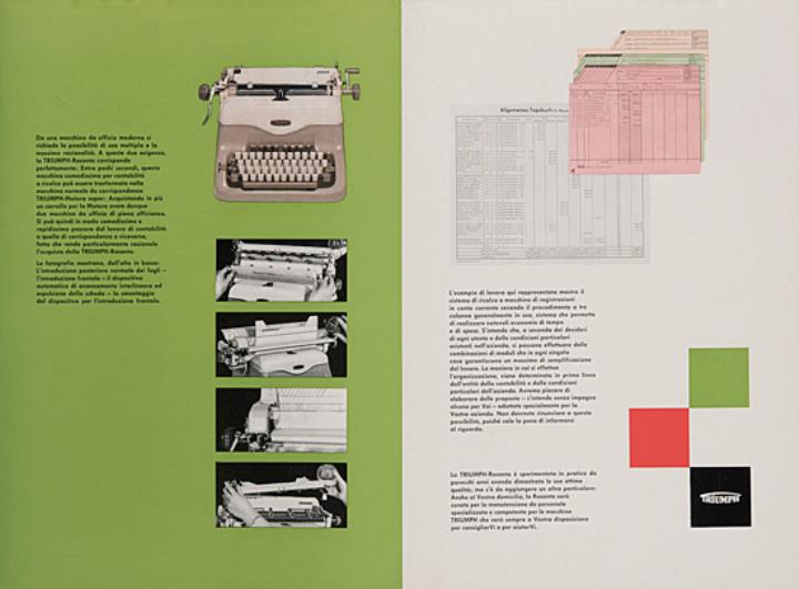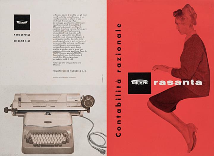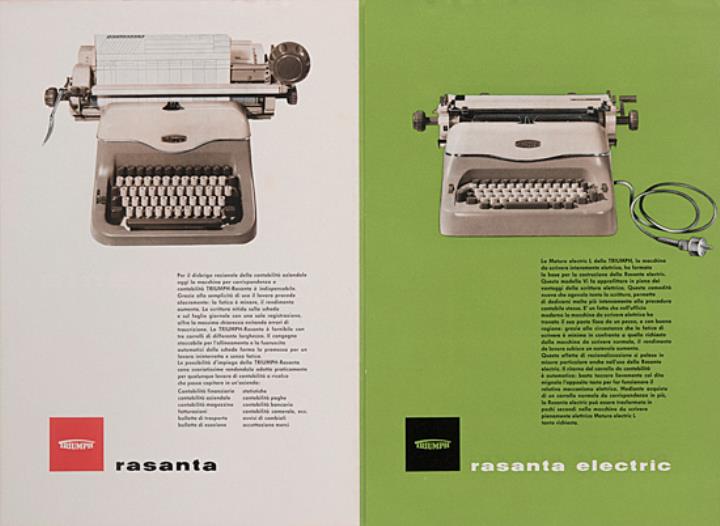 Faltprospekt für Schreib- und Buchungsmaschine Triumph Rasanta Nr. 1373/859/4 ital.