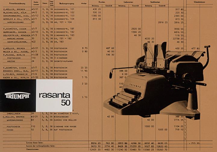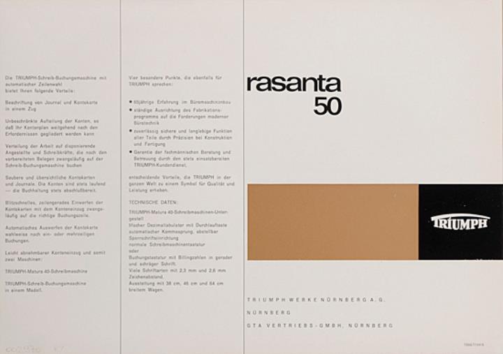 Faltprospekt für Schreib- und Buchungsmaschine Triumph Rasanta 50 Nr. 1866/1164/6
