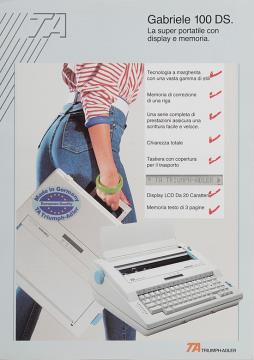 Prospekt für Schreibmaschine Triumph-Adler Gabriele 100 DS La super portatile con display e memoria Nr. WE 01129905/0390/5/40