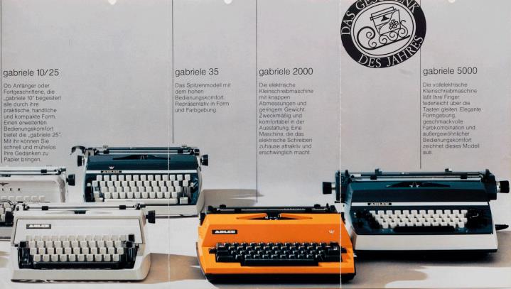 Faltprospekt für Adler Kleinmaschinen Tippa, Tippa S, contessa de luxe, gabriele 10/25, gabriele 35, gabriele 2000, gabriele 5000 Nr. A 997/1072/50./40