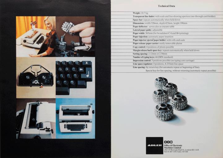 Faltprospekt in englischer Sprache für Schreibmaschine Adler electric