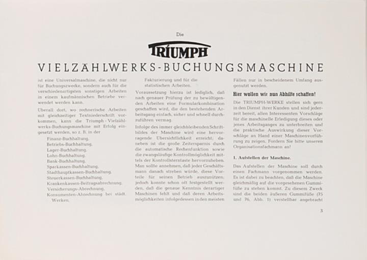 Gebrauchs-Anleitung zur Triumph- Vielzählwerks-Buchungsmaschine mit Duofix-Vorsteckeinrichtung