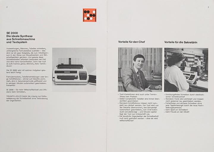 Prospekt für elektronische Schreibmaschine Triumph-Adler SE 2000 im Anwendungsbereich Steuerberater und Wirtschaftsprüfer