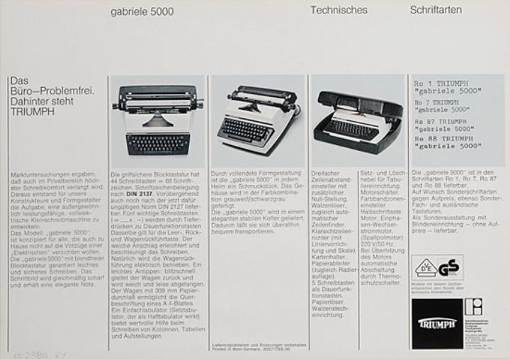 Prospekt für Schreibmaschine Triumph Gabriele 5000 Nr. 3032/1178/8.40
