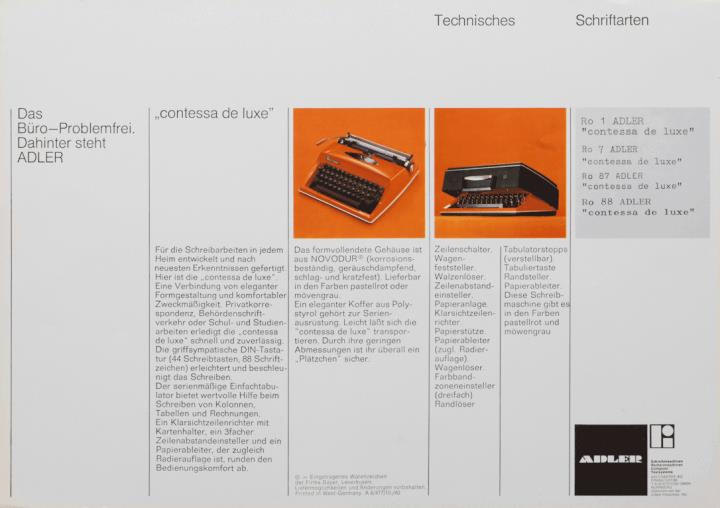 Prospekt für Schreibmaschine Adler contessa de luxe Nr. A 6/477/10./40