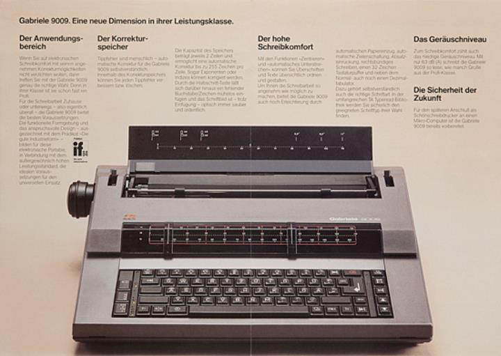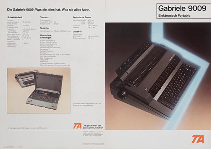Faltprospekt für Schreibmaschine Triumph-Adler Gabriele 9009 Nr. 01121701/484/100./40