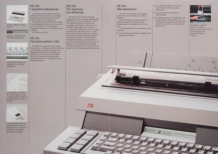 Faltprospekt für Schreibmaschine Triumph-Adler SE 515 Standard e molto di più Nr. WE 01129105/0589/5/40