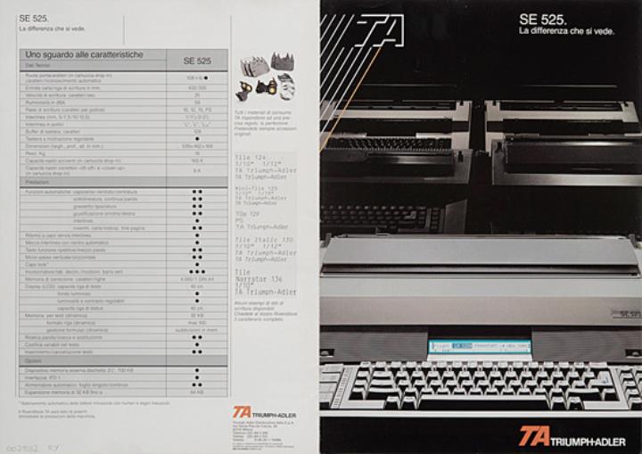 Faltprospekt für Schreibmaschine Triumph-Adler SE 525 La differenza che si vede Nr. WE 01129205/0589/5/40
