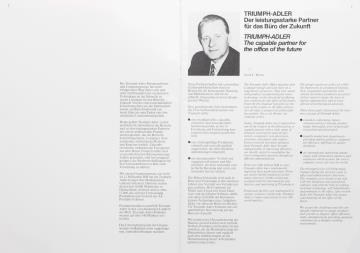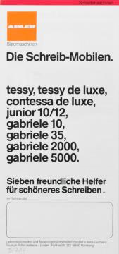 Faltprospekt für verschiedene Modelle der Schreibmaschinen Adler tessy, contessa, junior und gabriele