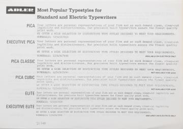 Adler Most Popular Typestyles for Standard and Electric Typewriters
