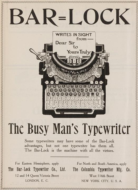 Werbeanzeige für Schreibmaschine Bar-Lock monochrom