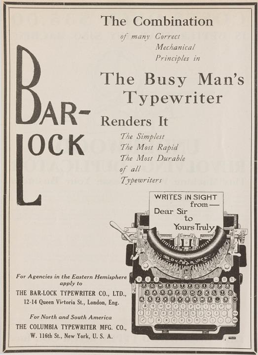 Bar-Lock The Busy Man's Typewriter