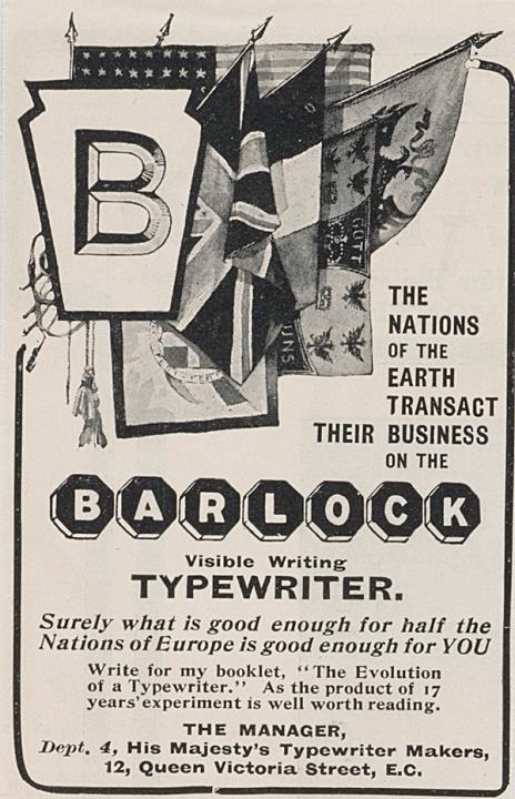 Werbeanzeige für Schreibmaschine Bar-Lock monochrom