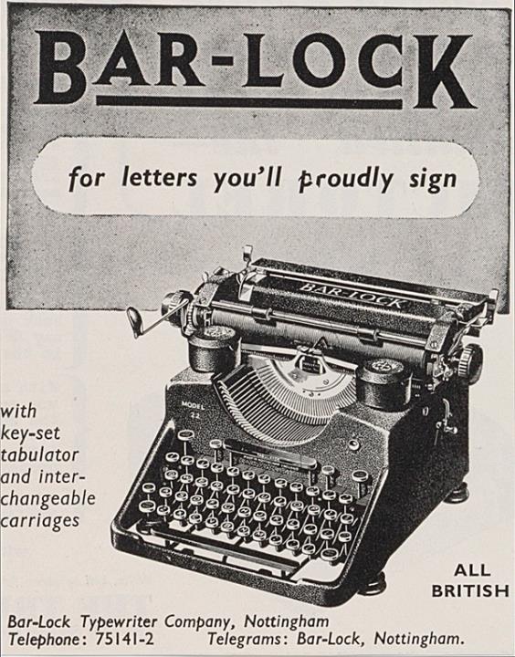 Werbeanzeige für Schreibmaschine Bar-Lock monochrom