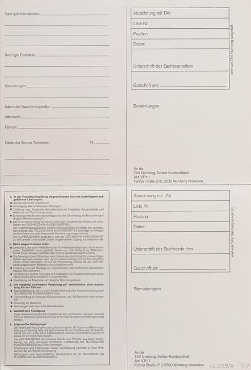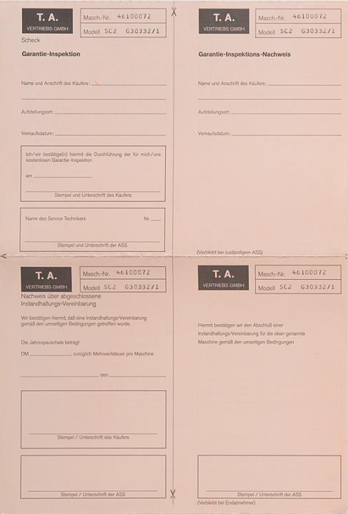 Garantieschein für Büromaschine Triumph-Adler SC 2 G30332/1 Nr. 46100072