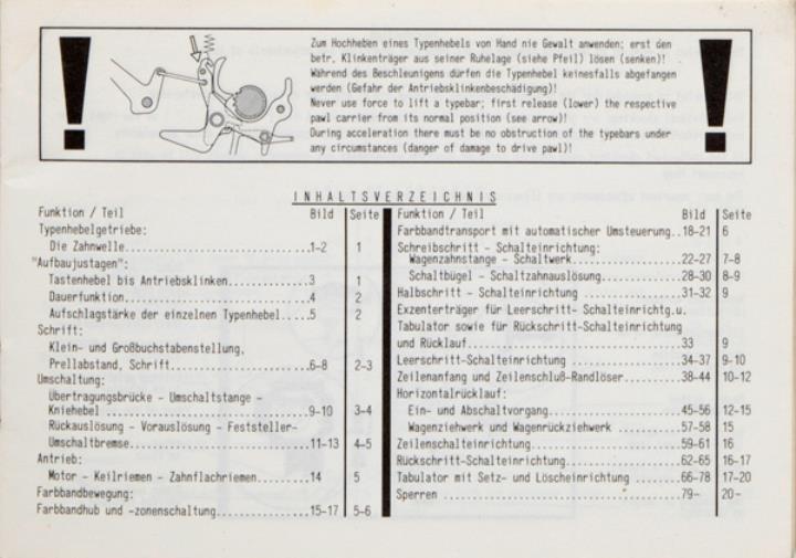 Reparaturanleitung viersprachig für Schreibmaschine Triumph-Adler / Royal-Imperial gabriele 5000, satellite 2001, electric MX, speedelectric, alpha und compact 770 Nr. 332/5/978/5 d,e,fr,sp