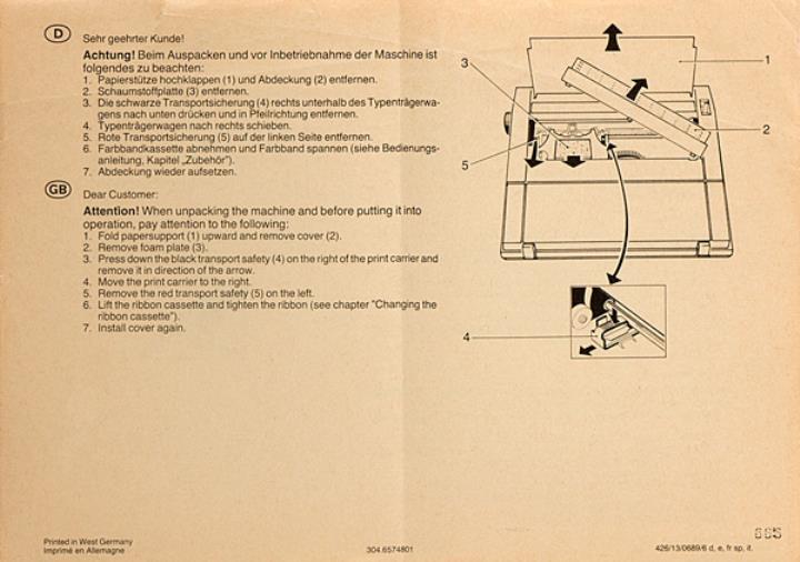 Bedienungsanleitung für Schreibmaschine Triumph-Adler Gabriele 100 Nr. 126/24/1289/5 d.