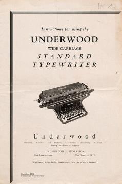 Instructions for using the Underwood Wide Carriage Standard Typewriter
