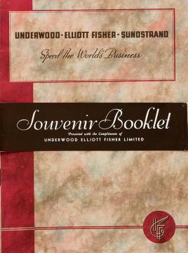 Prospekt in englischer Sprache für Schreibmaschine Undwood, Buchungsmaschine Elliott Fisher und Rechenmaschine Sudstrand Souvenir Booklet