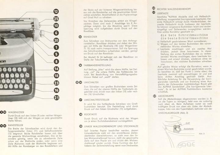 Bedienungsanleitung für Schreibmaschine Alpina Nr. 691/II