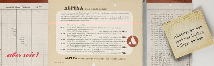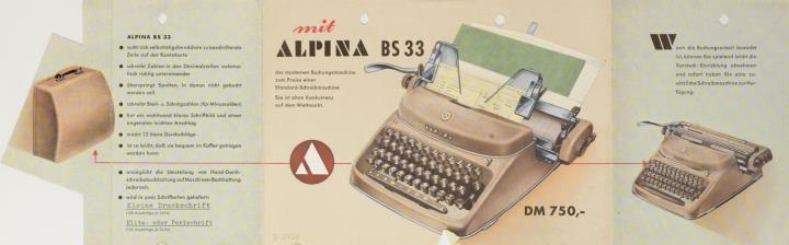 Faltprospekt für Schreibmaschine Alpina BS 33 der modernen Buchungsmaschine zum Preise einer Standard-Schreibmaschine Nr. 502d100VKK 1/55