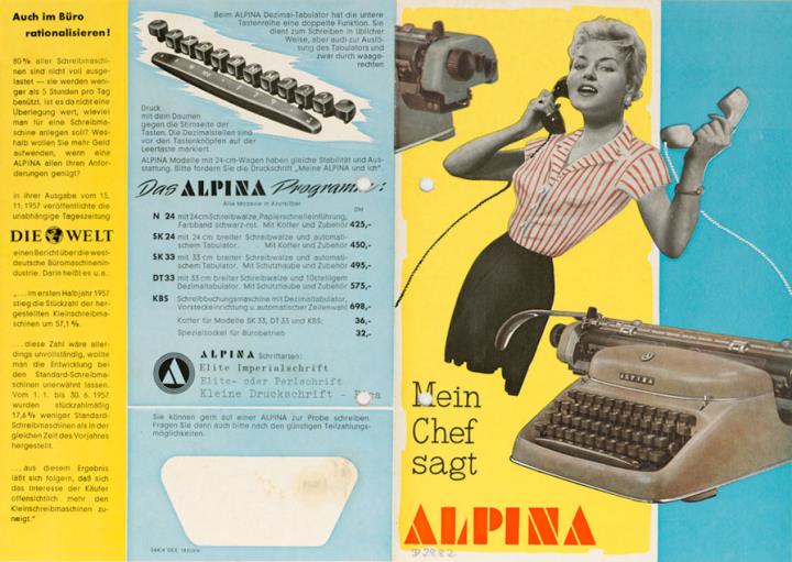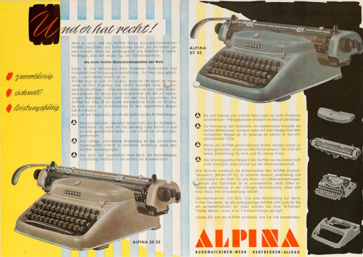 Faltprospekt für Schreibmaschine Alpina Nr. 544/4VKK txzusw