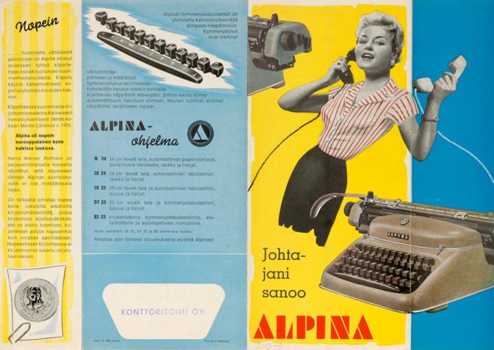 Faltprospekt in finnischer Sprache für Schreibmaschine Alpina Nr. 544/1 fi VKK oxzvsv
