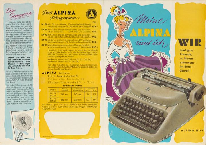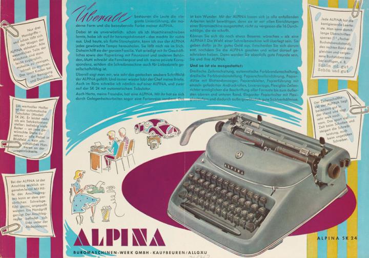 Faltprospekt für Schreibmaschine Alpina Nr. 543/3 FR uyz 1/57