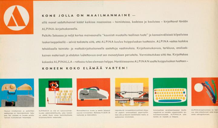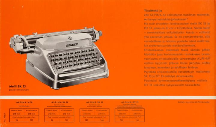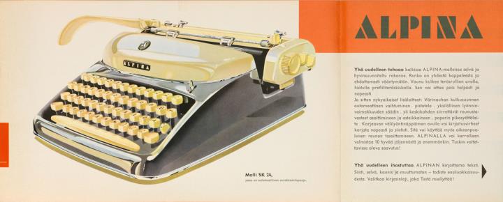Faltprospekt in finnischer Sprache für Alpina Schreibmaschinen Nr. 700/fi
