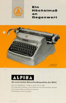 Prospekt für Schreibmaschine Alpina die erste leichte Büroschreibmaschine der Welt! Nr. 683 SM vxzoxtx