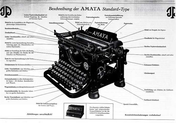 Faltprospekt für Schreibmaschine Amata Standard Type Nr. VR 82/1d 5000 III 23 Fotokopie