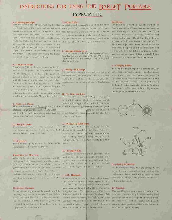 Bedienungsanleitung für Schreibmaschine Bar-Let Nr. 158325000