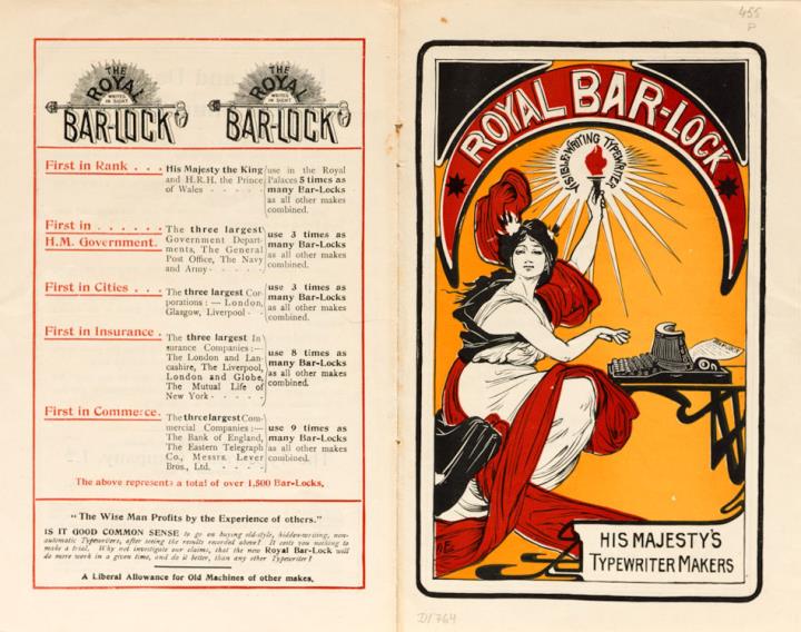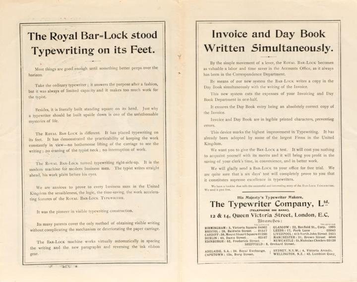 Faltprospekt für Schreibmaschine Royal Bar-Lock Grafik: OB