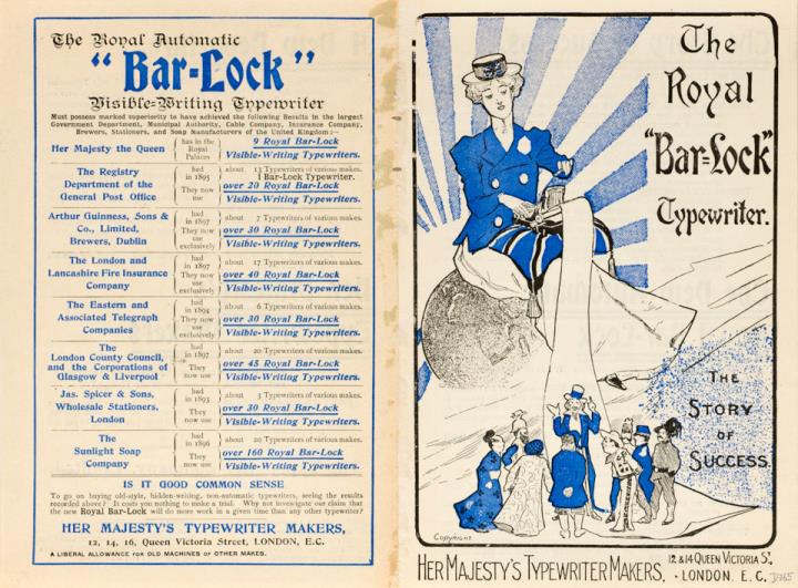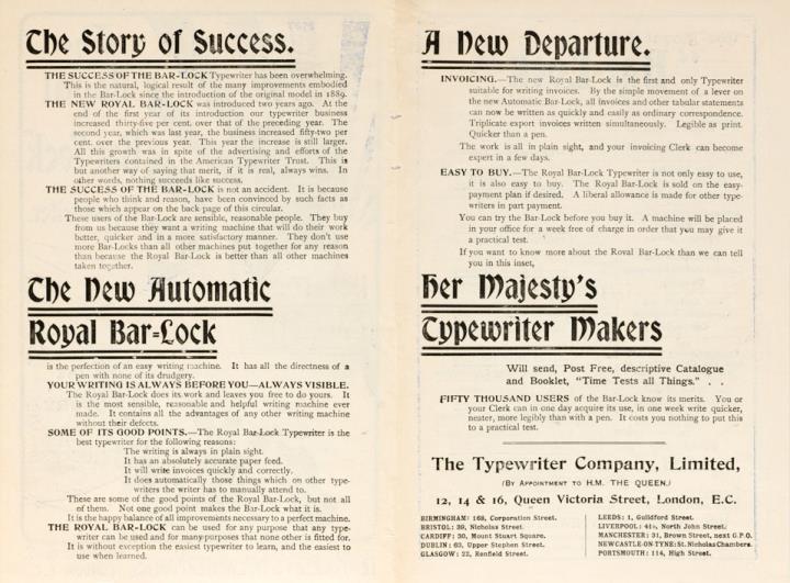 Faltprospekt für Schreibmaschine Royal Bar-Lock The story of success