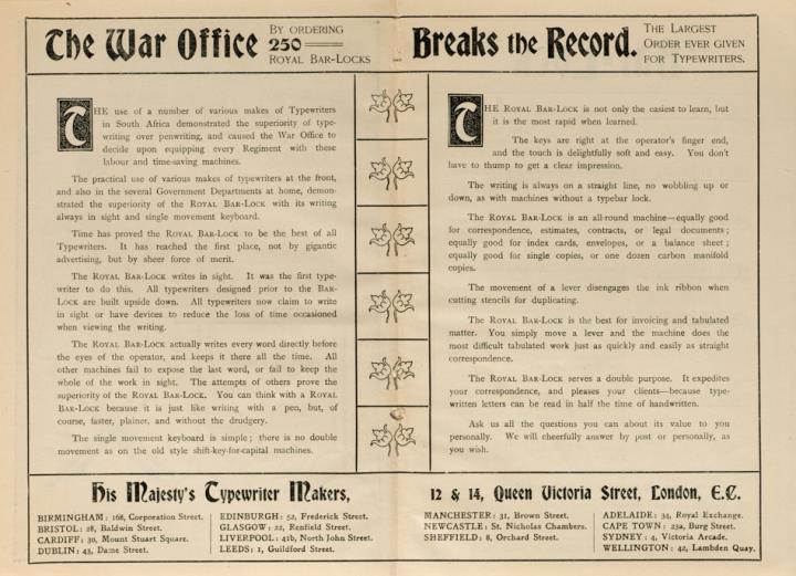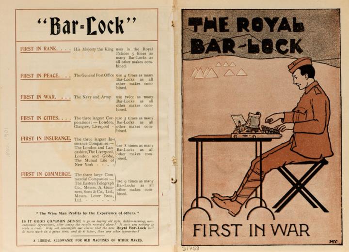Faltprospekt für Schreibmaschine Royal Bar-Lock Grafik: MY