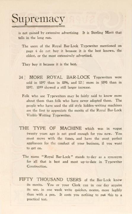 Prospekt für Schreibmaschine Royal Bar-Lock