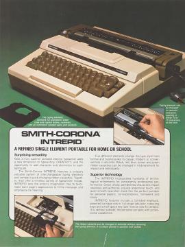 Prospekt für elektrische Schreibmaschine Smith-Corona Intrepid A refined single element portable for home or school Nr. CPE-0735