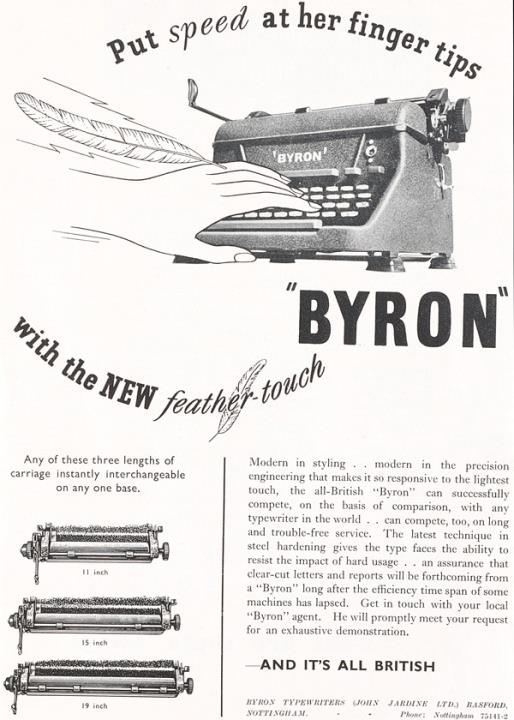 Werbeanzeige für Schreibmaschine Byron monochrom
