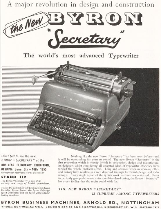 Werbeanzeige für Schreibmaschine Byron Secretary monochrom
