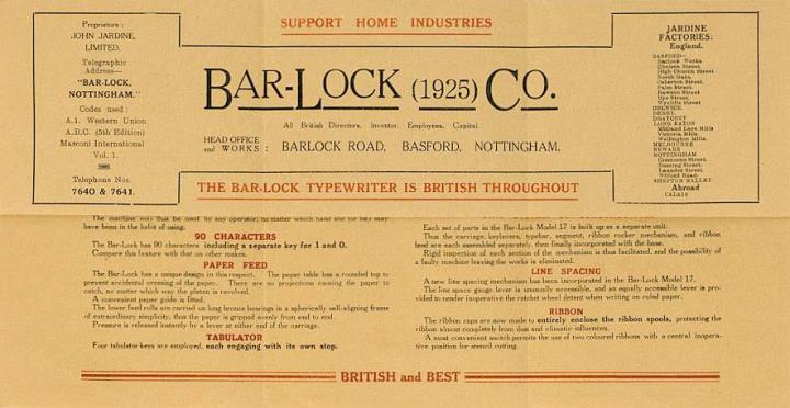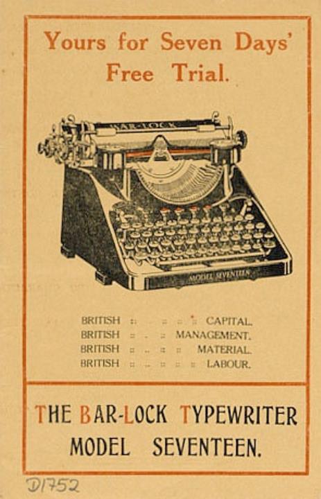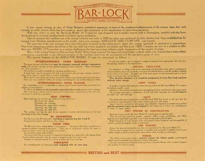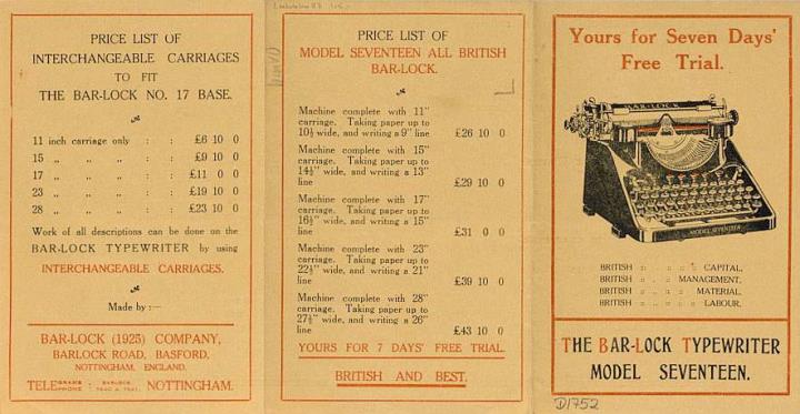 Faltprospekt für Schreibmaschine Bar-Lock 17 Yours for Seven Days' Free Trial
