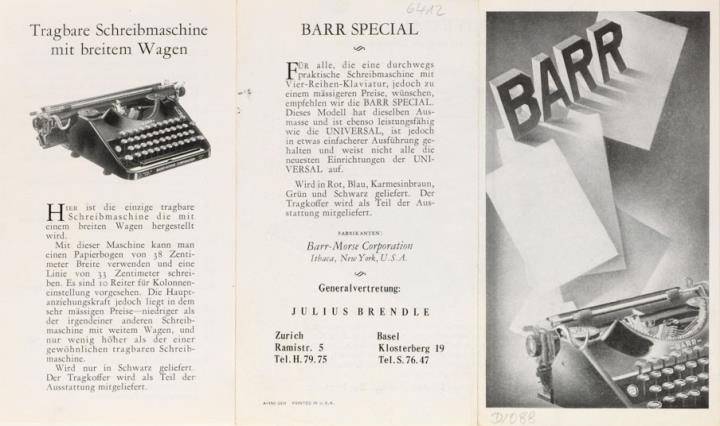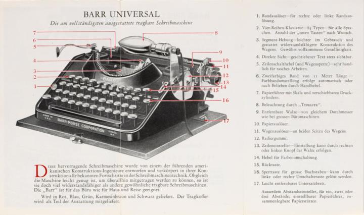 Faltprospekt für Schreibmaschine Barr Universal und Special A-150 Ger