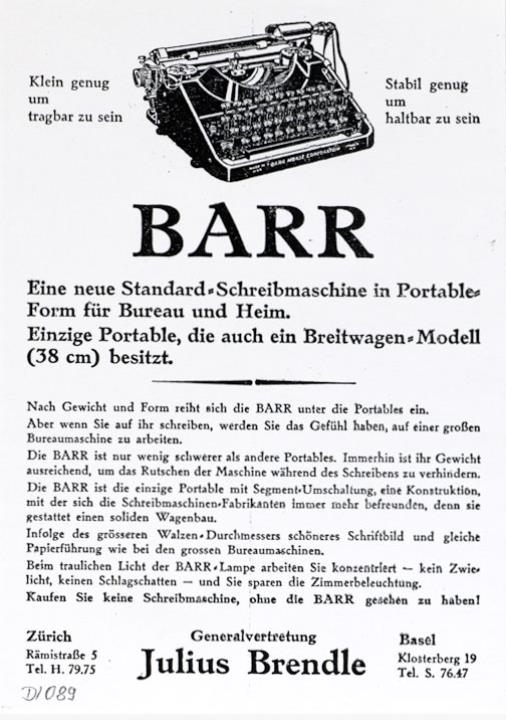 Prospekt für Schreibmaschine Barr Klein genug um tragbar zu sein. Stabil genug und haltbar zu sein