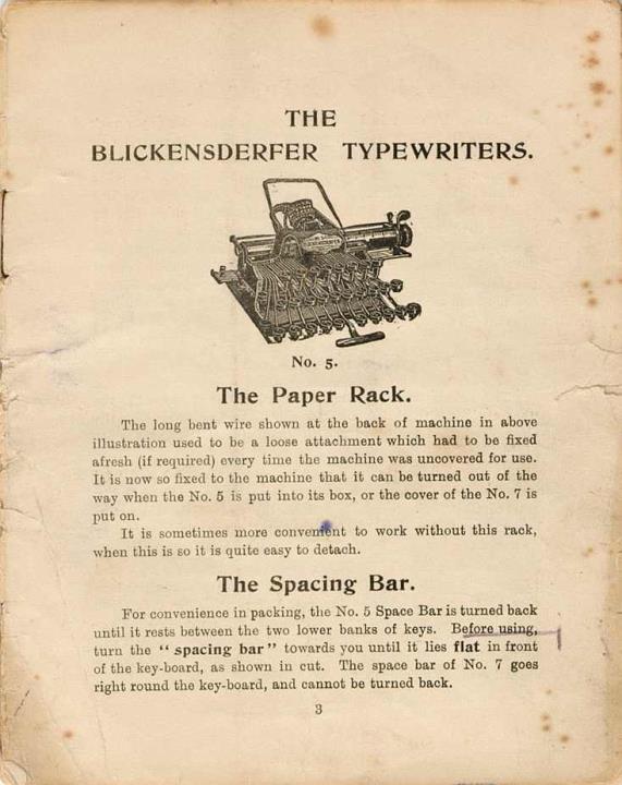 Bedienungsanleitung für Schreibmaschine Blickensderfer No. 5 und No. 7