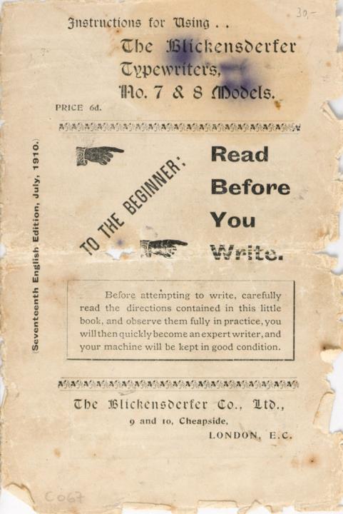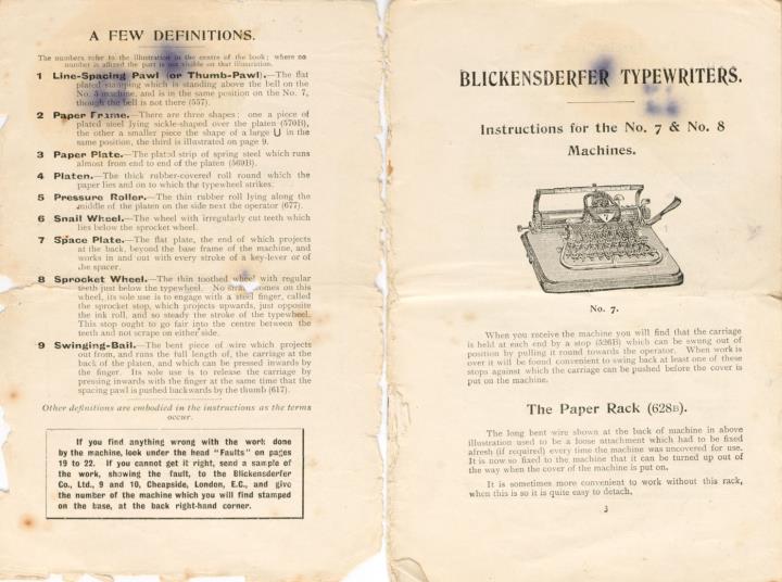 Instructions for Using the Blickensderfer Typewriters, No. 7 & 8 Models