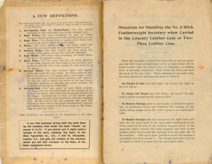 Bedienungsanleitung für Schreibmaschine Blickensderfer No. 6 (featherweight secretary)