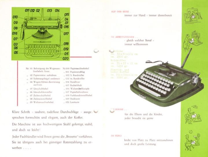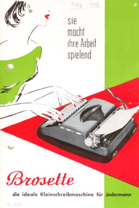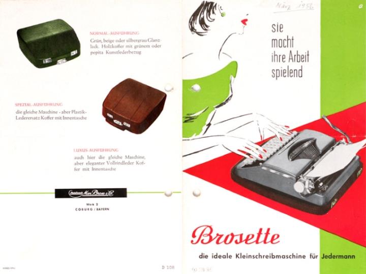 Faltprospekt für Schreibmaschine Brosette die ideale Kleinschreibmaschine für Jedermann Nr. D108 Datum handschriftlich vermerkt
