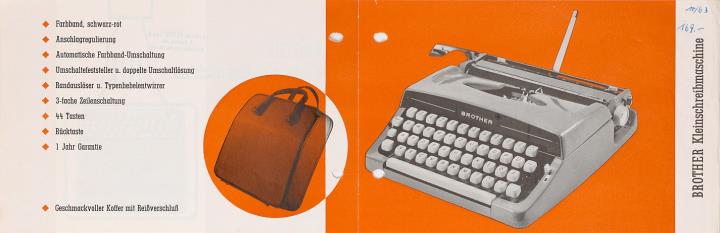 Faltprospekt für Schreibmaschine Brother Datum handschriftlich vermerkt