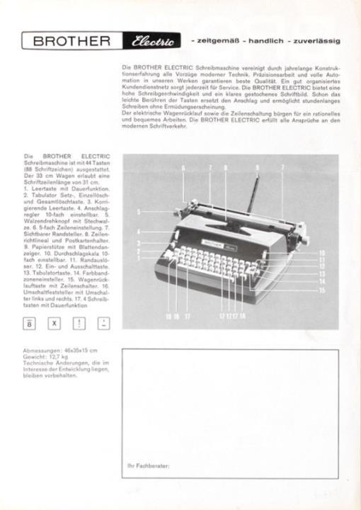 Prospekt für Schreibmaschine Brother Electric